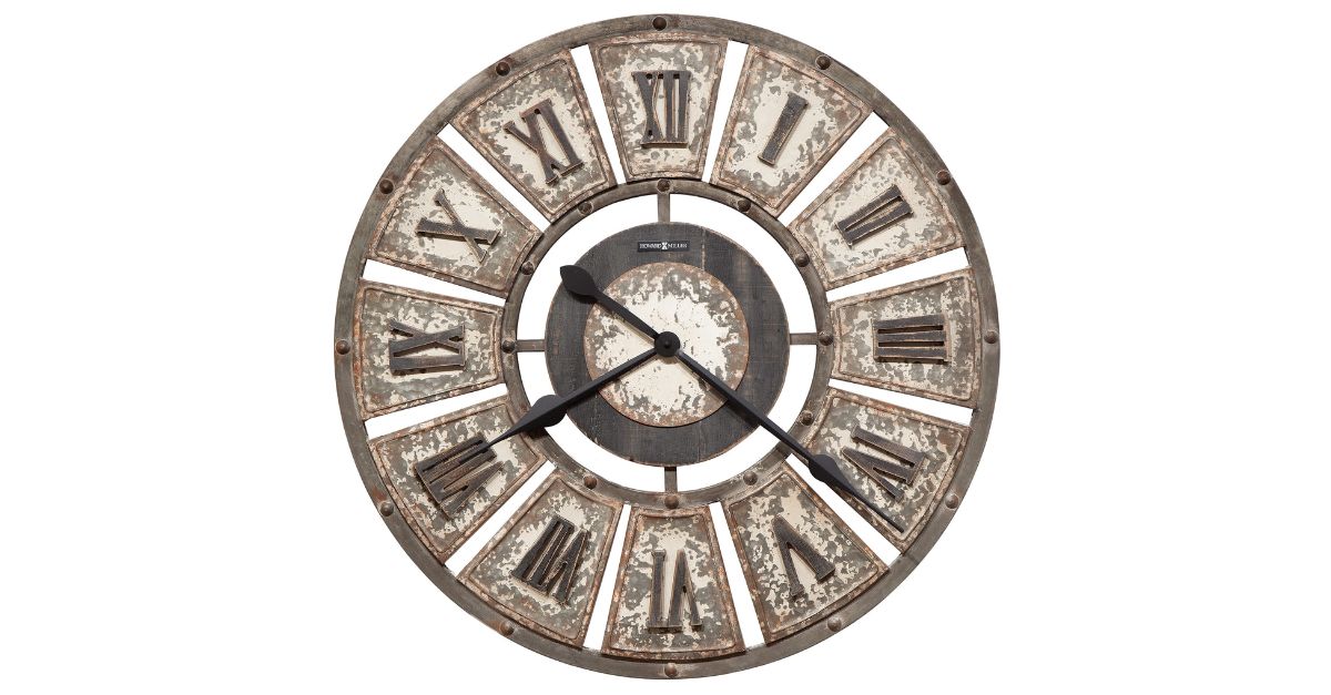• Made with galvanized metal, this standout clock bears a deeply distressed, aged finish that instantly calls to mind visions of antique décor from bygone eras.